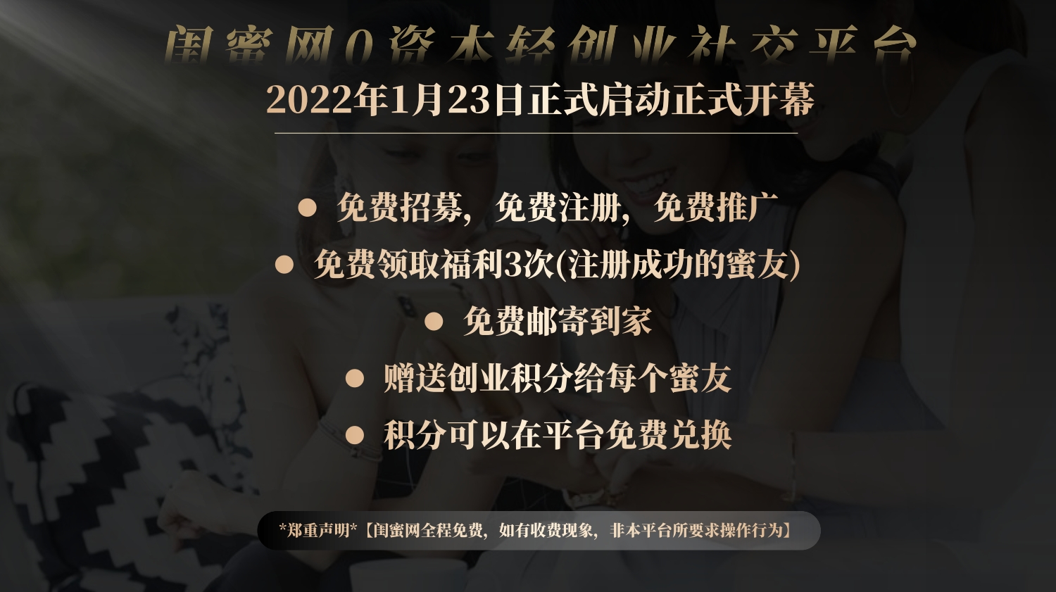 2022年1月23日,闺蜜联盟的升级项目“闺蜜网”正式启动!